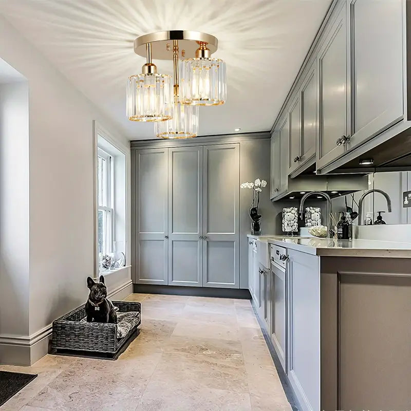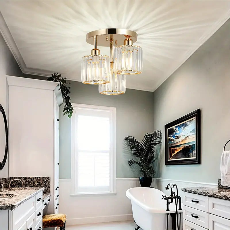Ce luminaire semi-encastré moderne intègre des cristaux taillés et une structure métallique dorée pour créer des reflets subtils dans votre espace. Compatible avec les ampoules E27 (non incluses), il s'installe dans toutes les pièces résidentielles grâce à son design épuré et sa tension universelle (110-240V).